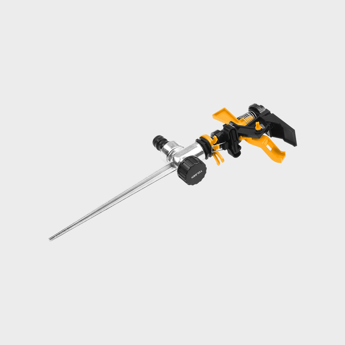 NOMBRE DEL PRODUCTO: ASPERSOR DE RIEGO MET�LICO MARCA: TOLSEN SKU: ASP09 MODELO/REFERENCIA: 57130 CATEGOR�A PRINCIPAL: RIEGO Y JARDINER�A PESO: NO ESPECIFICADO EN LA FUENTE DESCRIPCI�N CORTA: ASPERSOR DE IMPULSO MET�LICO CON ESTACA, FABRICADO EN METAL Y ZINC RESISTENTE. OFRECE RIEGO CIRCULAR O SECTORIAL CON UN DI�METRO DE ASPERSI�N DE HASTA 24 METROS.
